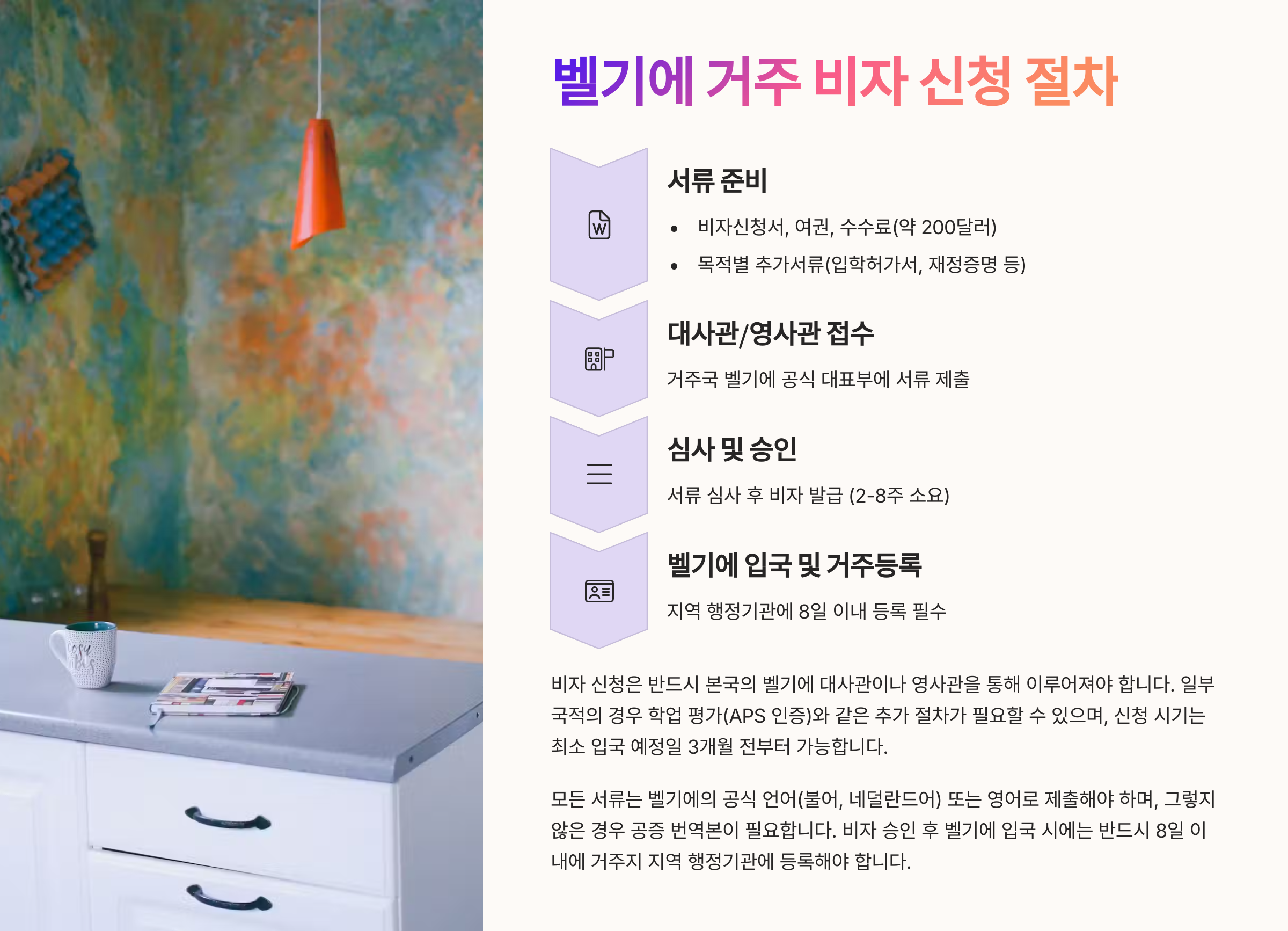 아래 표에서 벨기에 거주 비자 신청 절차를 확인해 보세요! ✨