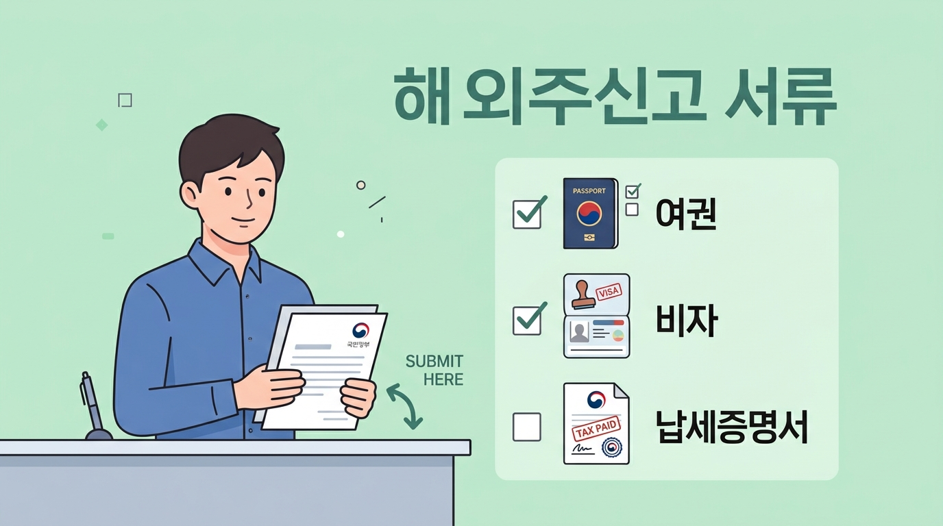 서류가 하나라도 빠지면 신고가 지연될 수 있으므로, 출국 전 미리 준비하는 것이 중요합니다. 재외동포청 공식 안내 기준으로 필수 서류는 아래와 같아요.